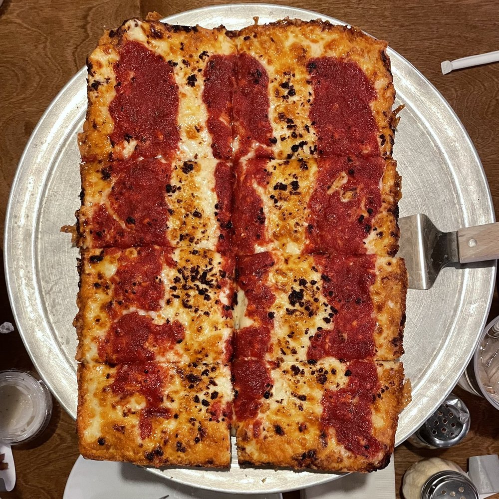 The menu features classic Detroit-style deep dish pizza, perfect for those who appreciate a thick, cheesy slice loaded with toppings. Don’t overlook the Greek salad—it’s fresh and tangy, adding a nice balance to your meal. With plenty of seating available indoors and outdoor dining options as well, you can choose how you want to enjoy your food.